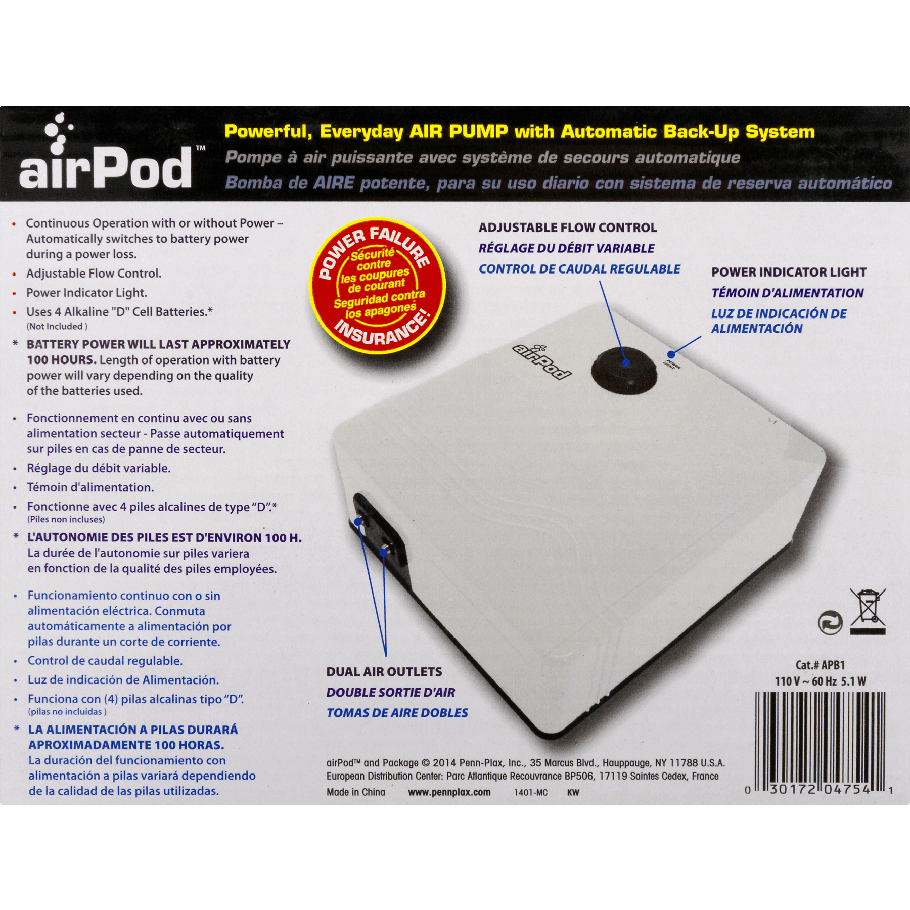 Penn Plax Airpod Air Pump With Automatic Backup System 1 0 Ct